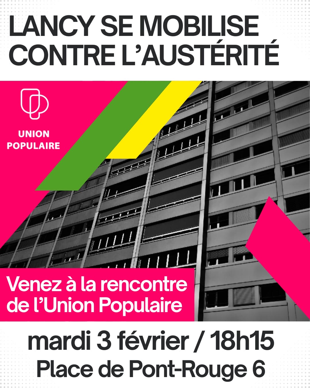 L’Union populaire (UP) de Lancy a suivi les débats sur le budget 2026 au Conseil municipal de la commune en décembre. Nous avons vu une majorité de droite décider d’un régime d’austérité, qui prive les habitant·e·s et les salarié·e·s de prestations municipales dont ils et elles ont bien besoin. Du logement abordable aux crèches, la commune peut et doit faire mieux, pas faire moins ! Or la politique de repli antisocial dominante n’est pas une fatalité. Elle ne correspond pas à la volonté populaire. L’UP a donc lancé trois référendums qui permettront - pour commencer - aux habitant·e·s de la commune de dire NON à trois décisions aberrantes du municipal :
